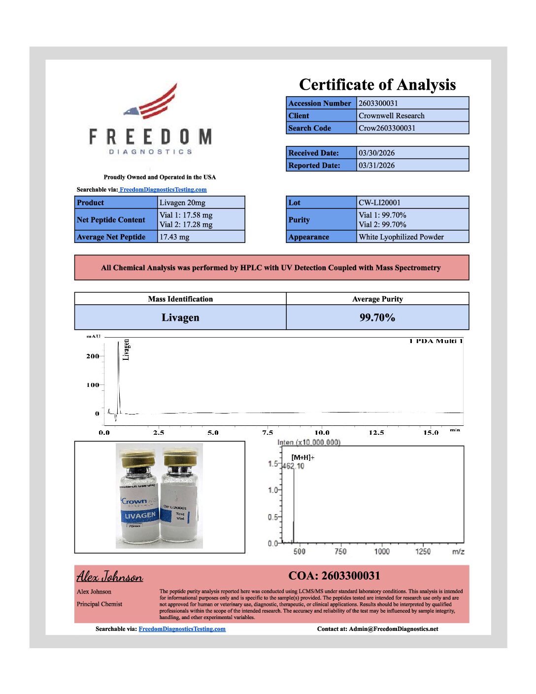 - 20mg lyophilized Livagen (bioregulator peptide)